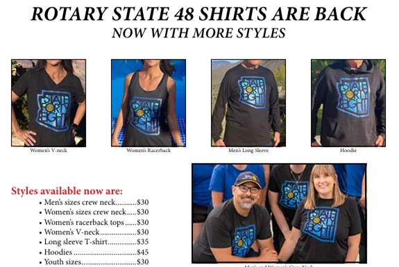- Colleen had State 48 shirts which she promised Dan she would help him sell. There are several different designs. Members held them up for all to see. There is a separate article in this newsletter telling how to buy them.