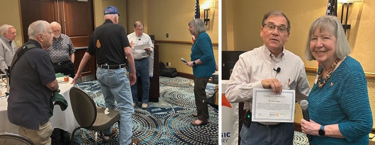 Glen Richardson was in attendance from Calgary. He was promoting some Home Hospitality opportunities available to enable Rotarians attending the International Convention to enjoy some of what the area has to offer including the Calgary Stampede which will take place July 3. He spoke of a train ride that many love because they get to enjoy the pristine beauty of the heartland. He spoke briefly about the '96 "Best Convention Ever" Calgary. and encouraged members to take an enjoyable 1500 mile drive to enjoy the 2025 Calgary RI Convention. CLICK HERE to see the flyer Glen had placed on the tables at the meeting.