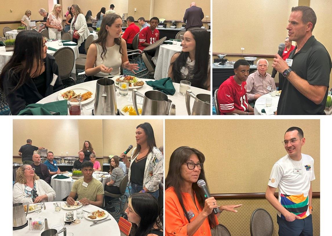 Opening and Welcome - PDG John Pennypacker Warren Williamson led the Pledge of Allegiance and Dick Myren offered the invocation. John Pennpacker, who had recently attended a reunion of Army Aviators, had hoped to share a You-Tube video to commemorate Memorial Day. It was slow loading. Rather than delay the meeting, it was sent to our club members on Memorial Day. In case you missed it, CLICK HERE. Introduction of Guests Because this meeting was celebrating two of our favorite youth programs - Rotary Youth Exchange and Rotary Builds Bridges - there were many guests at the meeting. To protect the privacy of our youth, and because your editor is not sure that her notes accurately tell her who is who, enjoy the photos and the memories they evoke. Colleen Coons is in the bottom right photo introducing potential member Diego Felix. Diego is from Mexico. He has had a considerable amount of Rotary experience, much of it with Rotaract. It has enabled him to travel to Taiwan and South Korea. He received a scholarship to attend a Rotary International convention where he met amazing people. He moved to Arizona for work. He is married and is a resident. He has a video company and helped with the recent District Conference. He said many of the people in the conference videos were from Mesa West Rotary. Announcements - We will not have an in-person meeting at the Doubletree May 29. Those who signed up will visit the Alcor Life Extension Foundation in Scottsdale.