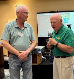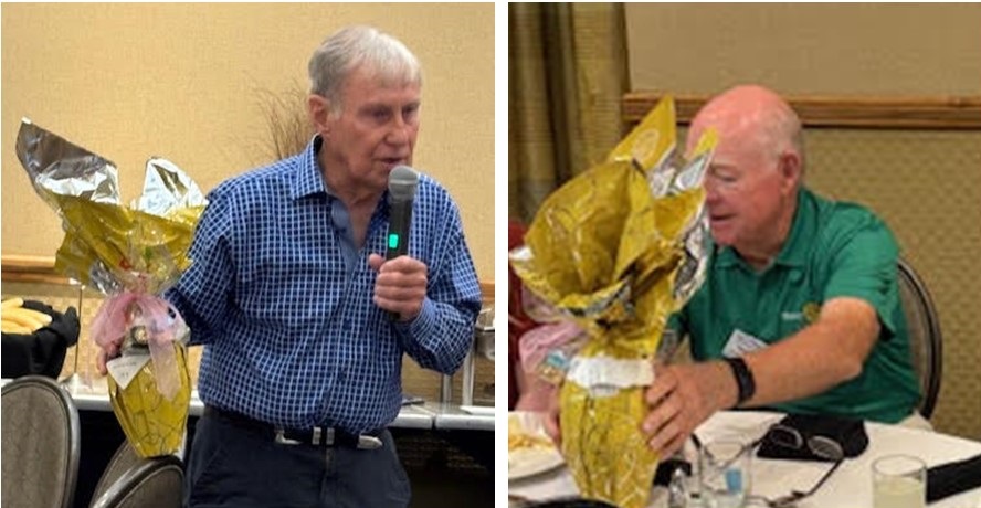 John was very pleased to be able to present Jim McGown with his Paul Harris Plus Two recognition pin. With the pledge made during Happy Bucks, Jim obviously is not finished supporting the work done through The Rotary Foundation.
